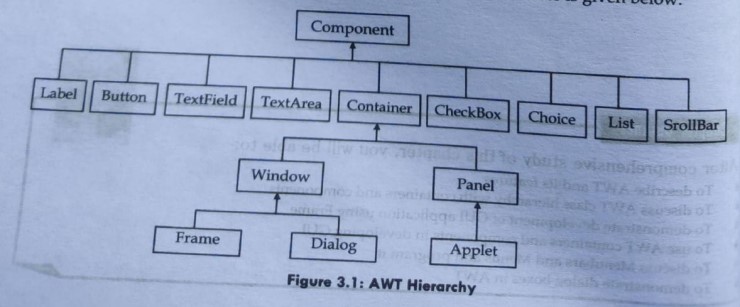 The ultimate superclass of all the GUI components both in AWT as well as Swing is the java.awt.Component. The hierarchy of widely used Java AWT classes is given below: